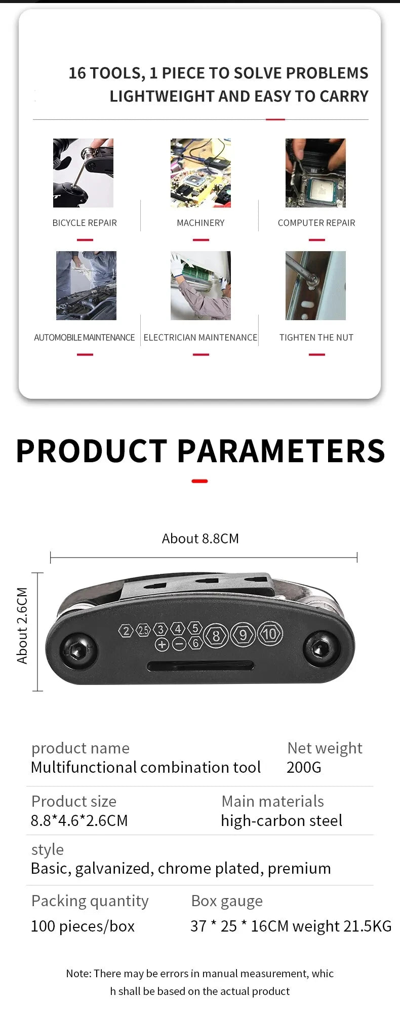16 in 1 MTB Tools Road Bicycle Allen Wrench Pocket Tools Portable Bicycle Repair Tool set Multifunction Tools