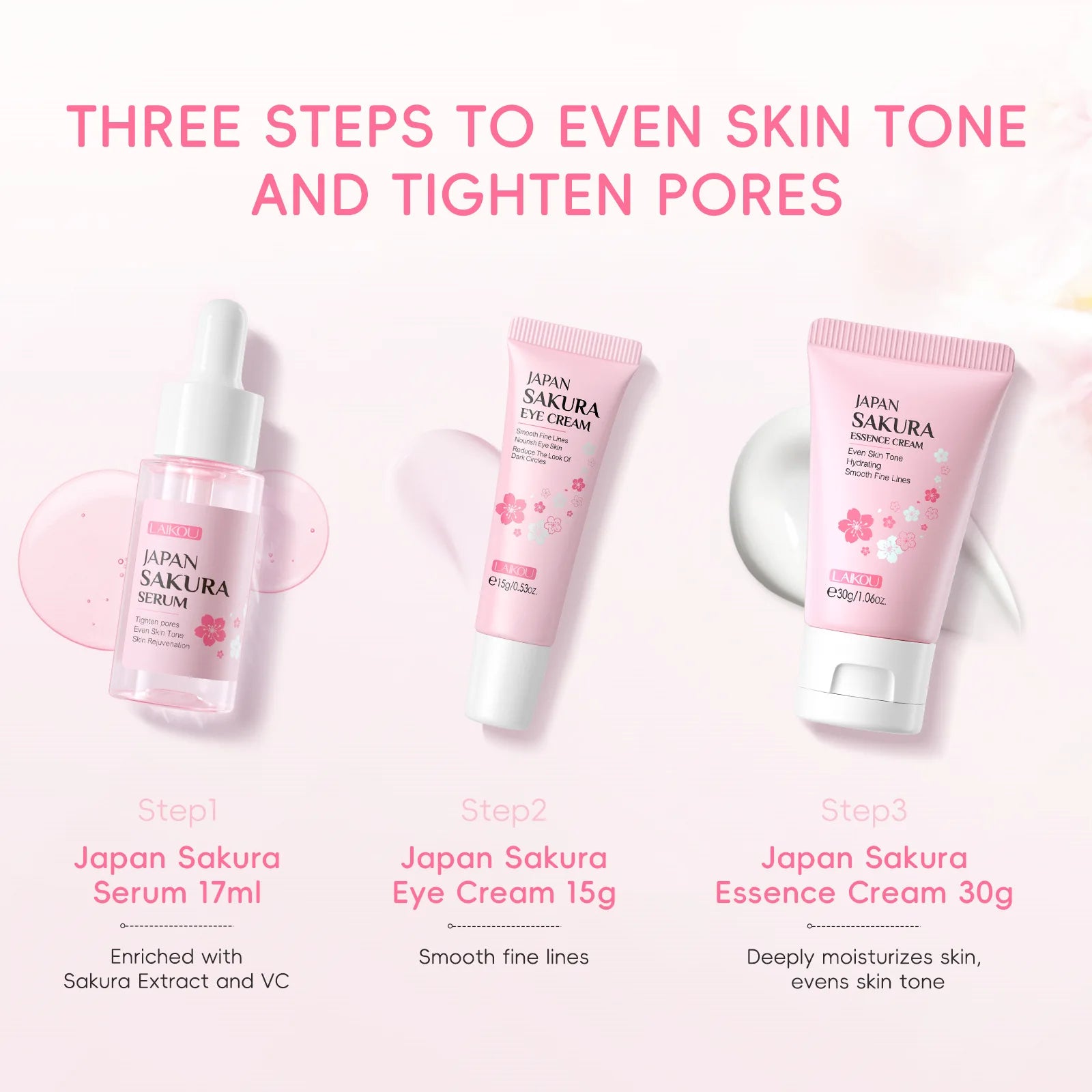 3pcs/set Sakura Skin Care Sets Face Cream Serum Eye Cream Face Beauty Products for Women Daily Moisturizing Skin Care Products