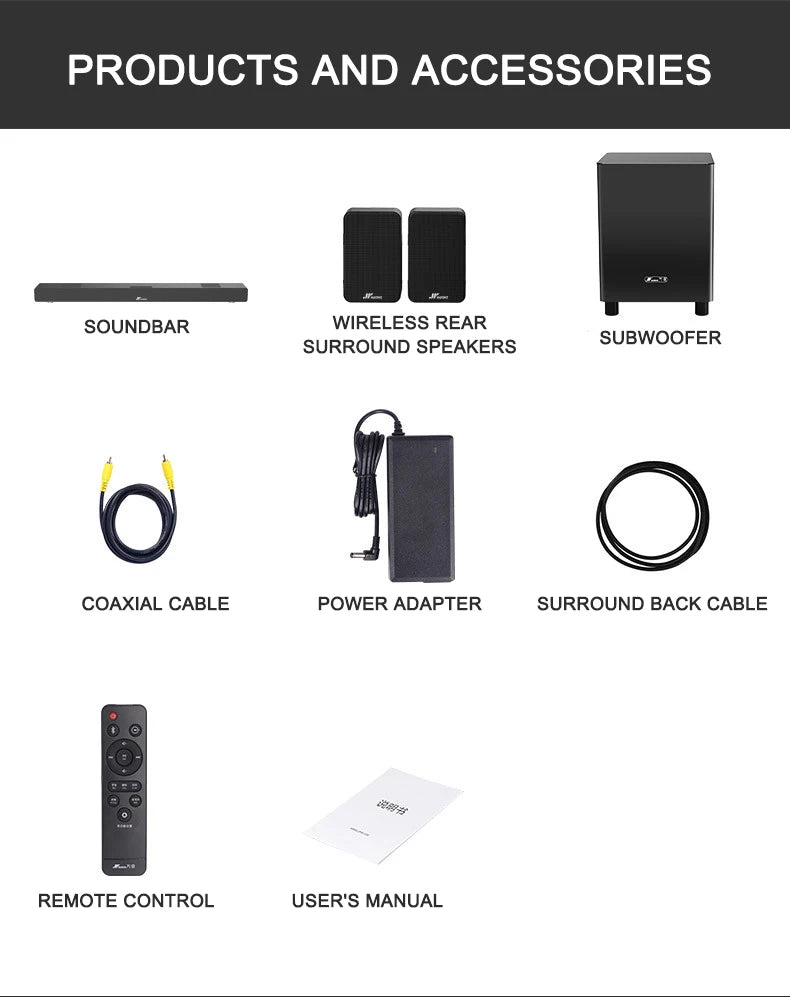 7.1 HD Wireless Home Theater Surround Sound System for TV with Big Sound Wired Subwoofer and 2 Pairs of Surround Speakers