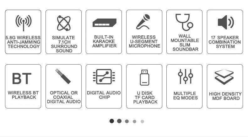 Soundbar horn: treble 2 inches * 2 + full frequency 3 inches * 2 + passive bass * 4