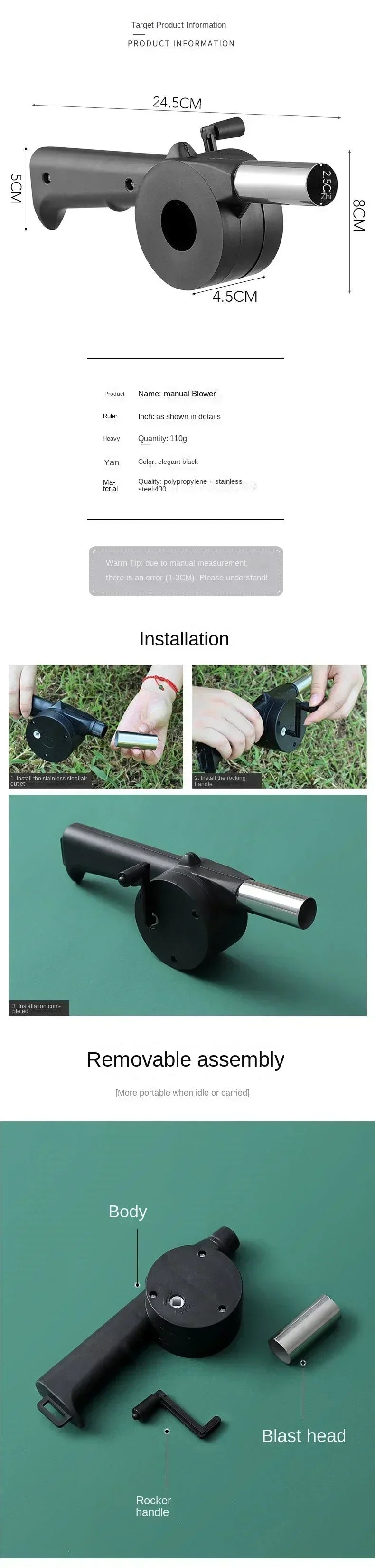 Camping Barbecue Fan Portable Hand-Operated Blower Efficient Fire Making Blower Charcoal Combustion Blower Picnic BBQ Tools
