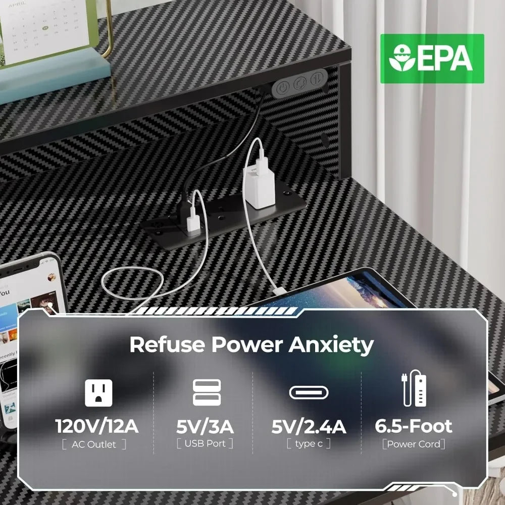 For Computer Desk with LED Lights & Power Outlets, 54” Gaming Desk with Storage Shelves, Home Office Desk with Keyboard Tray