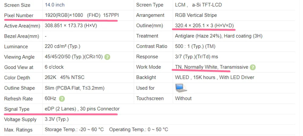 Model Number: NT140FHM-N41