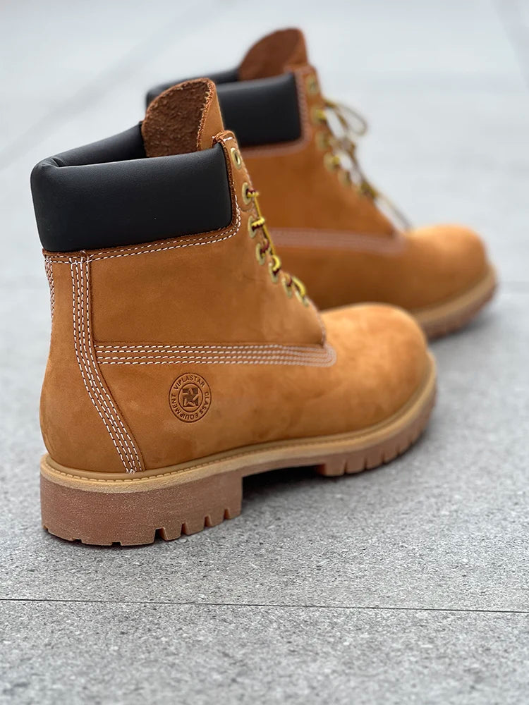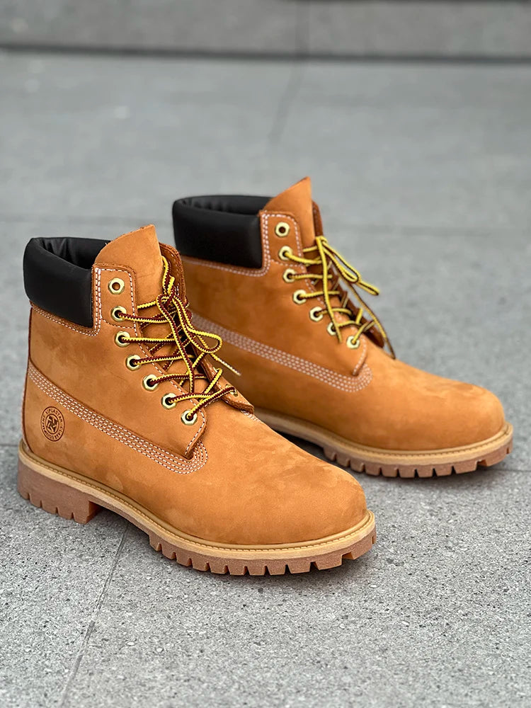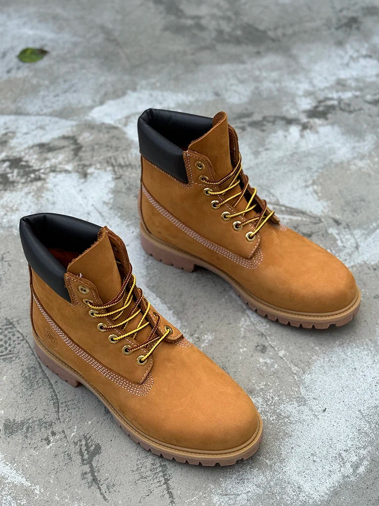 Hiking boots Men's High Help Work Suit Boots Cowhide Yellow Boots Cotton Shoes ClimbiWaterproof Shoes Lovers Shoes Yellow Boots