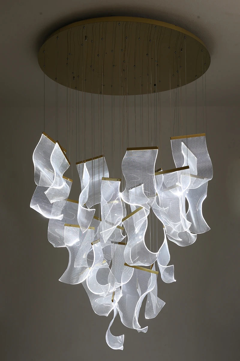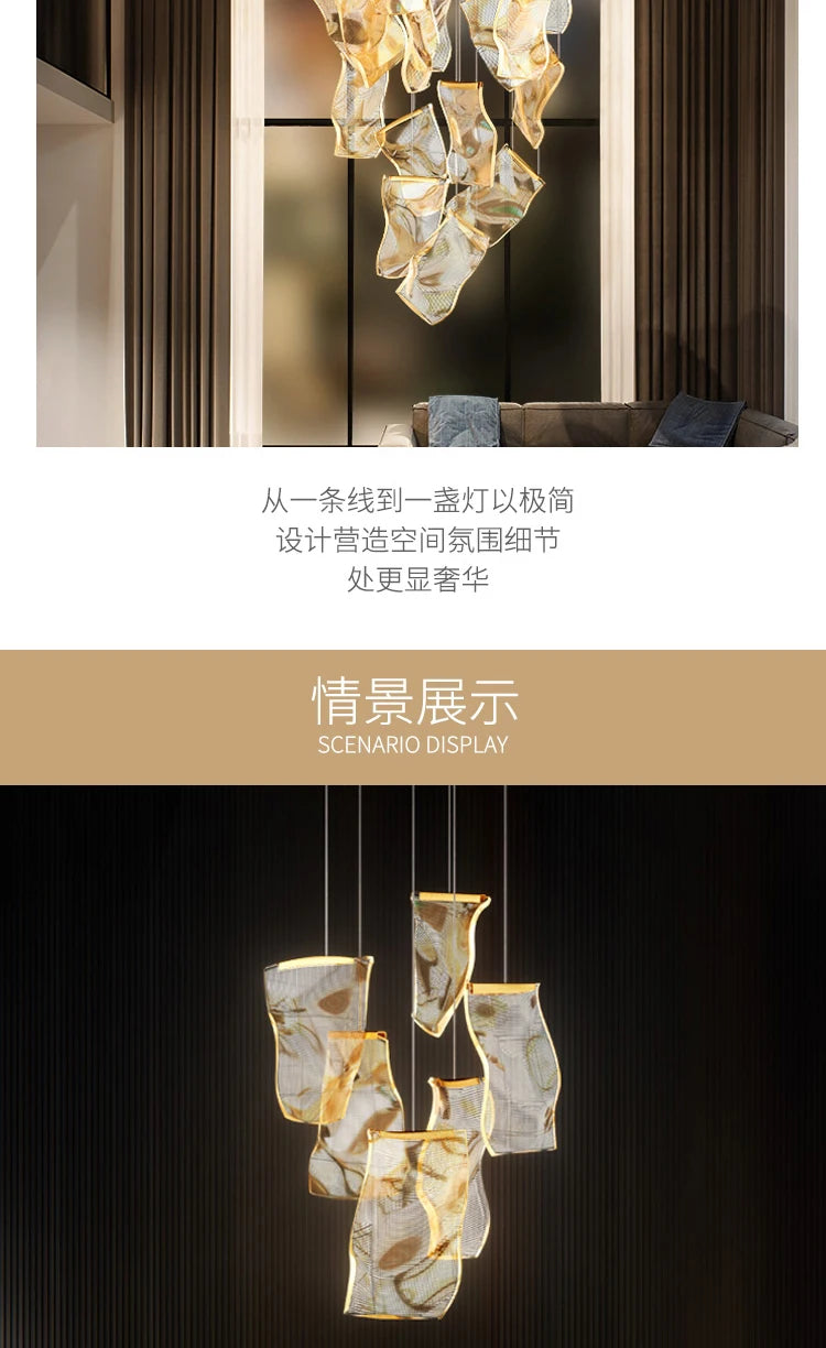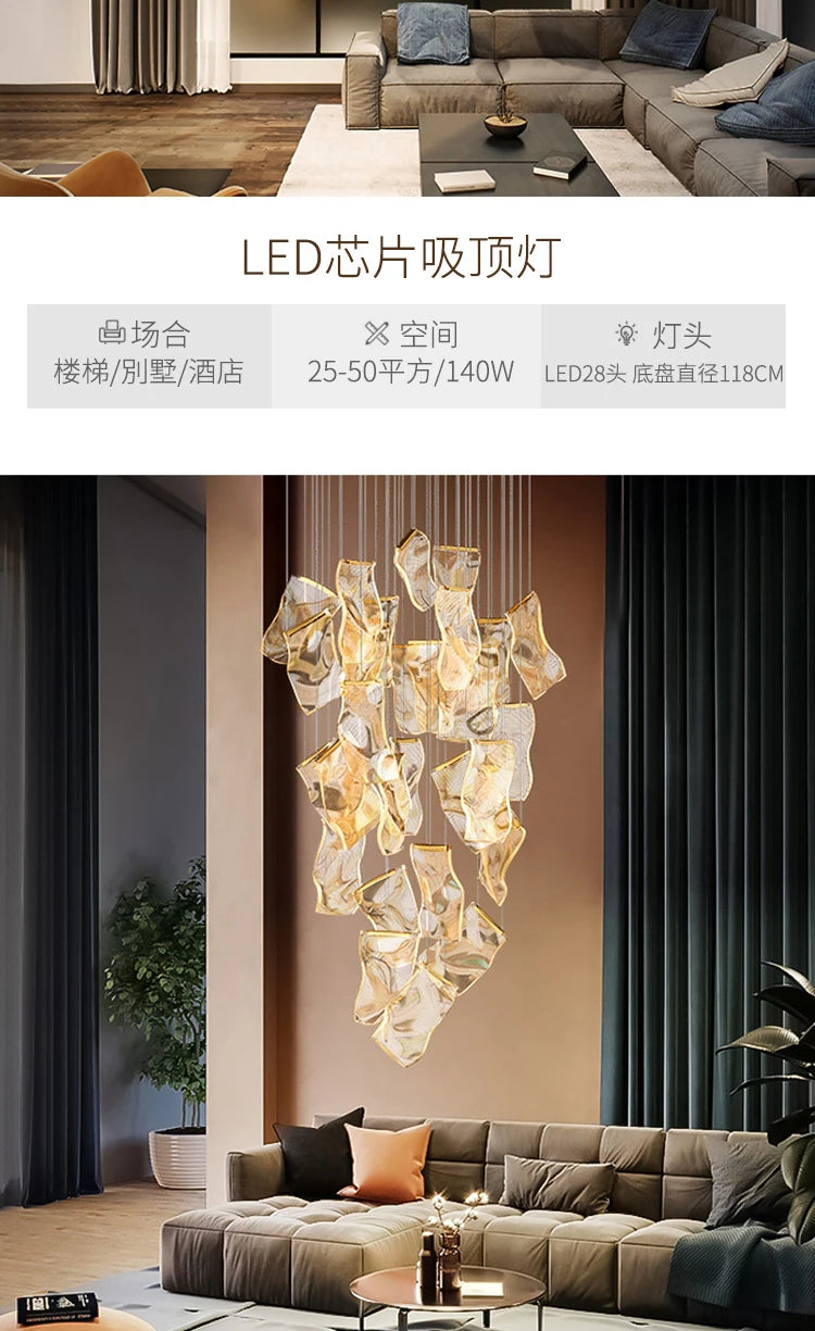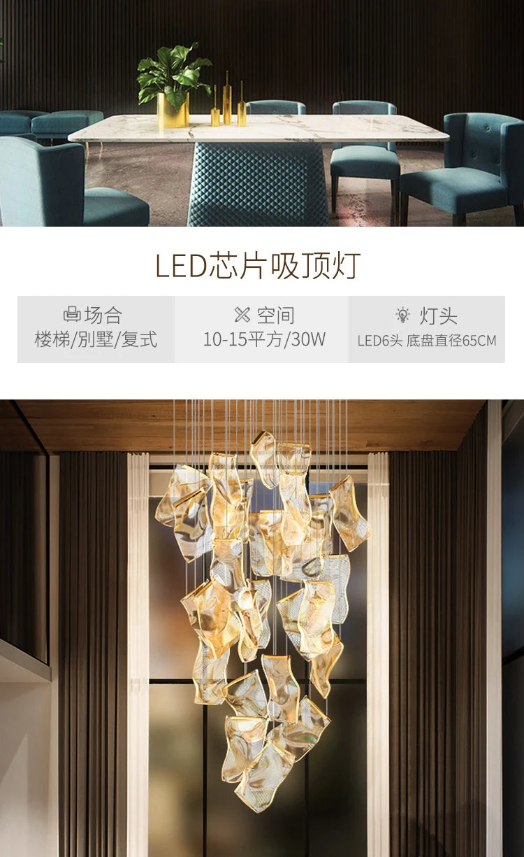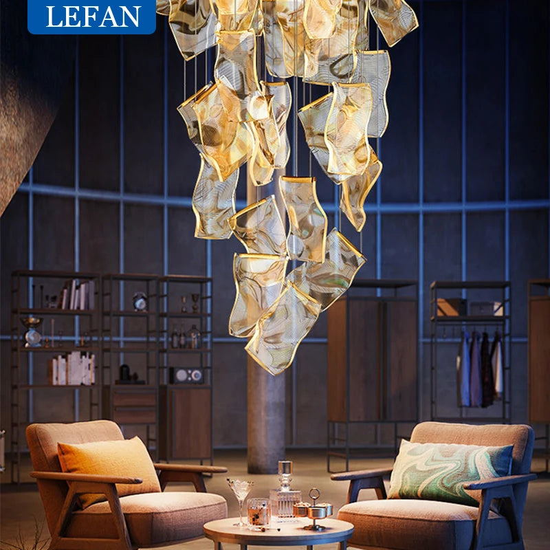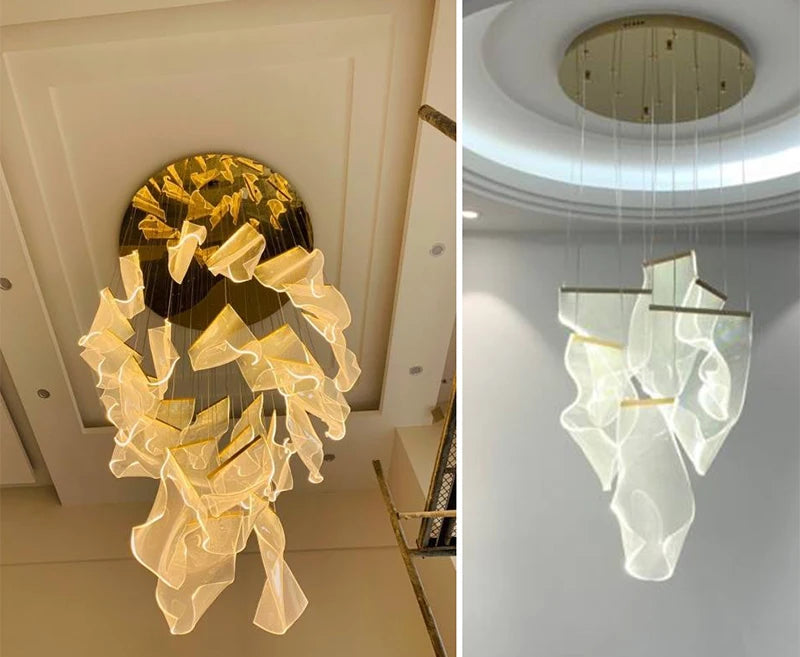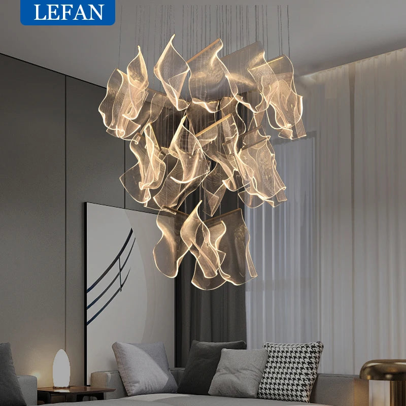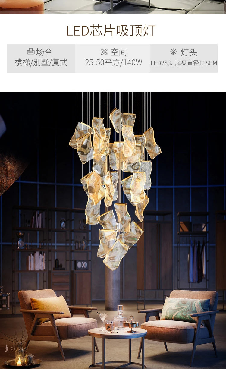 Light Guide LED Modern Chandelier living room decor lighting Duplex Rotating Stairs Pendant Lamp Dining room Hanging Lights
