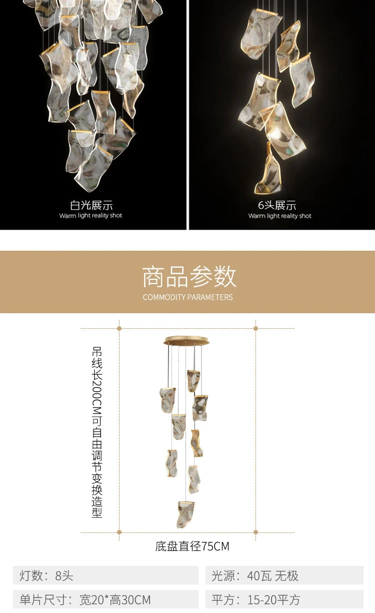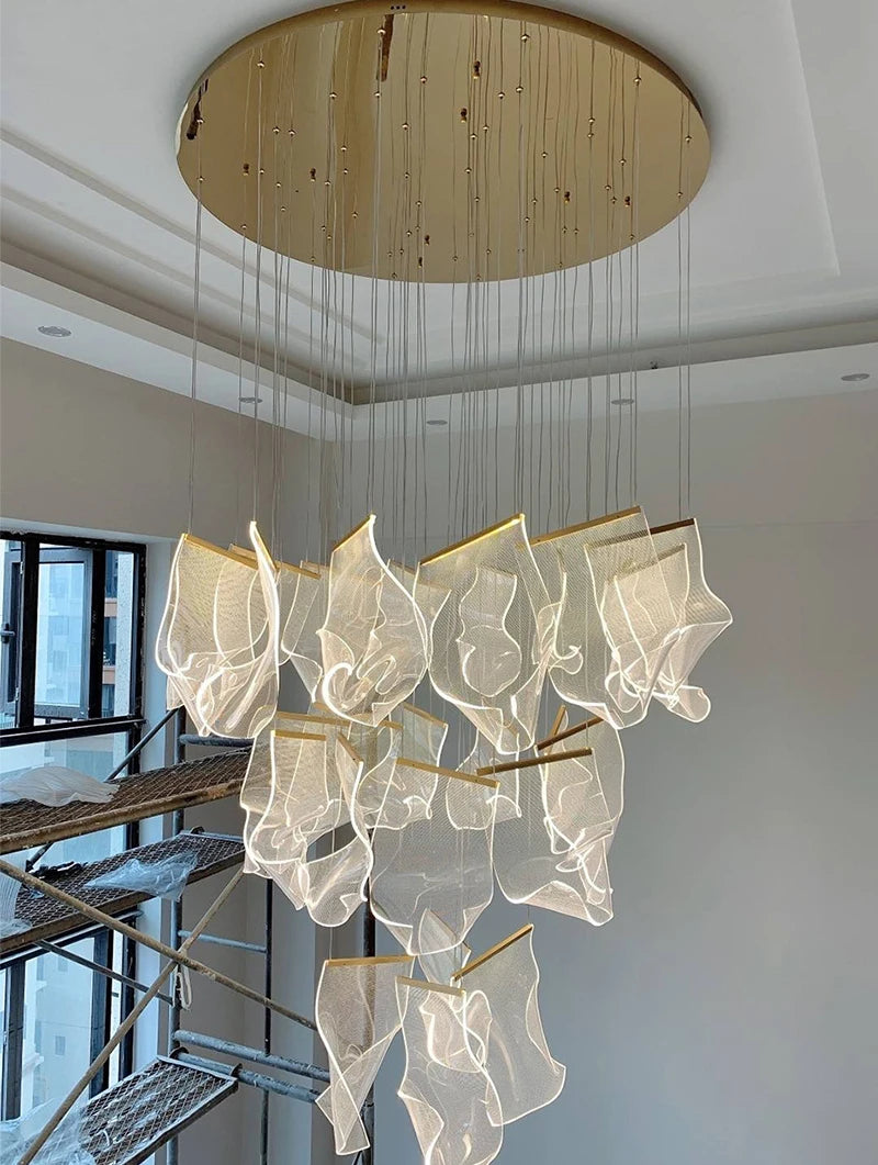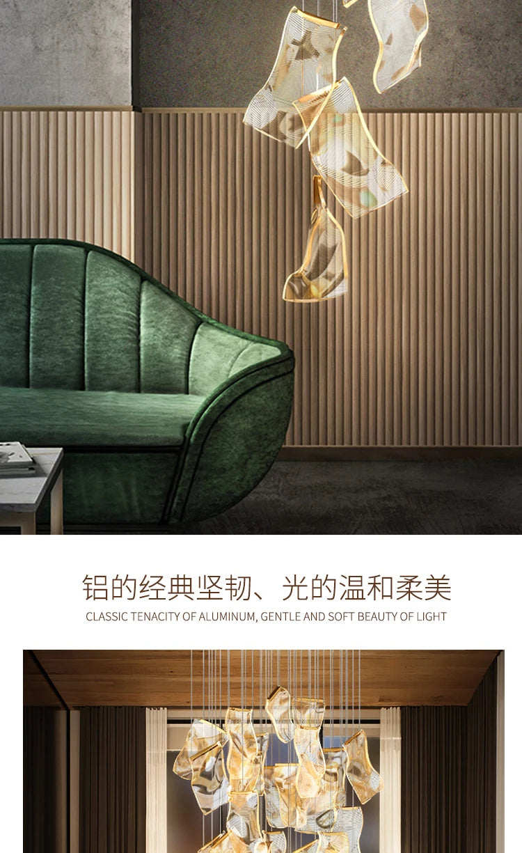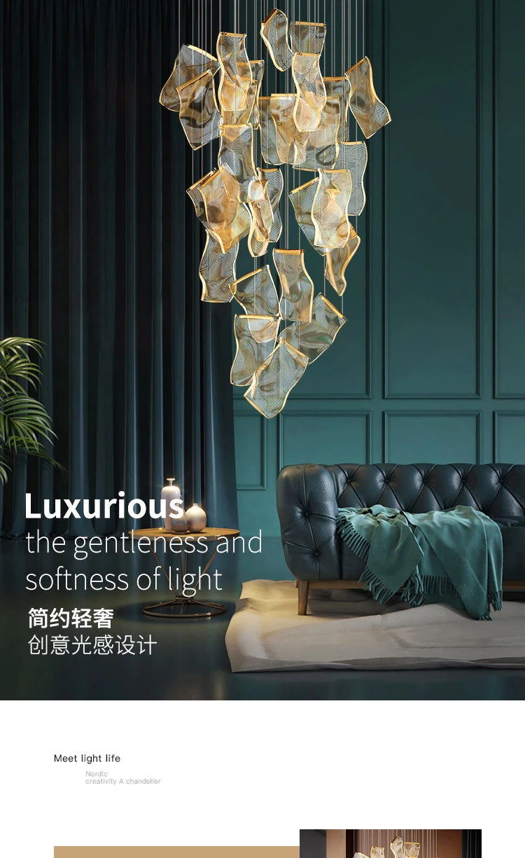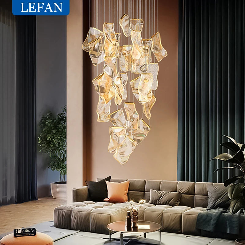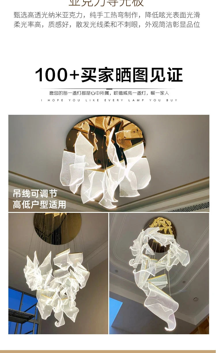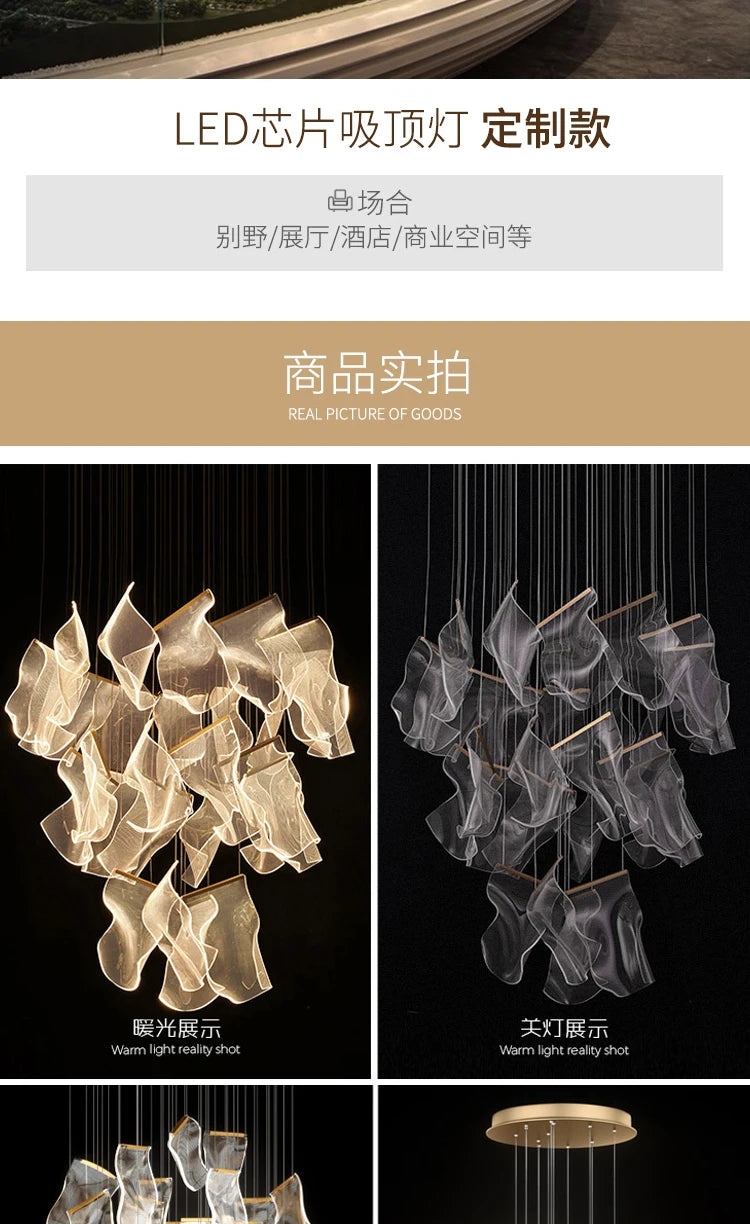 Light Guide LED Modern Chandelier living room decor lighting Duplex Rotating Stairs Pendant Lamp Dining room Hanging Lights