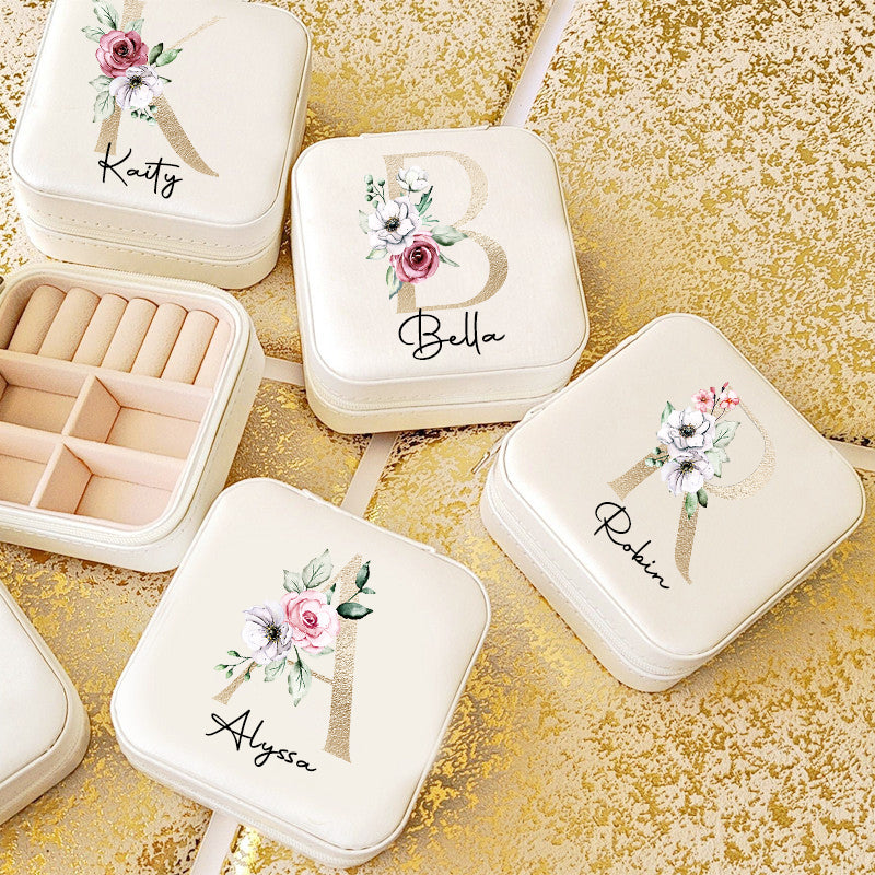 Personalized Jewelry Boxes Travel Jewelry Case Custom Initial with Name Birthday / Holiday Bridesmaid Mother's Day Gifts for Her